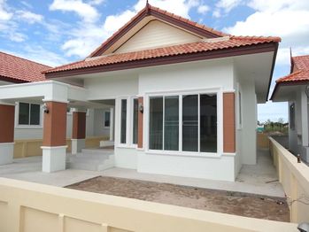New Cha am house for sale. This Cha am house for sale has 2 bedrooms, 2 bathrooms, living, dining room and kitchen. Living area is 120 sqm, Land area 212sqm. This house is 2.5km from the beach. Other features include covered parking. House is unfurnished. Contact chaammintproperty@hotmail.com